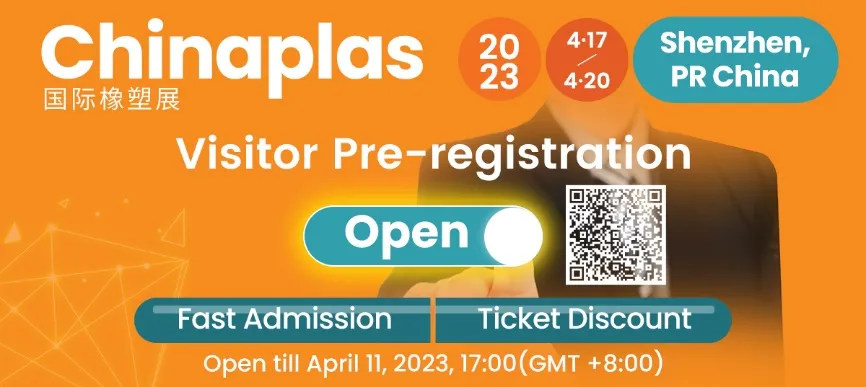 The Online pre-registration to CHINAPLAS 2023 is open till April 11, 2023, 17:00 (GMT +8:00). Visitors can enjoy an early bird discount at RMB 50 or USD 7.5 (Original Price: RMB 80) for a four-day pass. Pre-registered visitors shall receive their Visitor e-Badge or e-Confirmation Letter in advance for fast entry. For more information about the exhibition, please visit www.chinaplasonline.com.